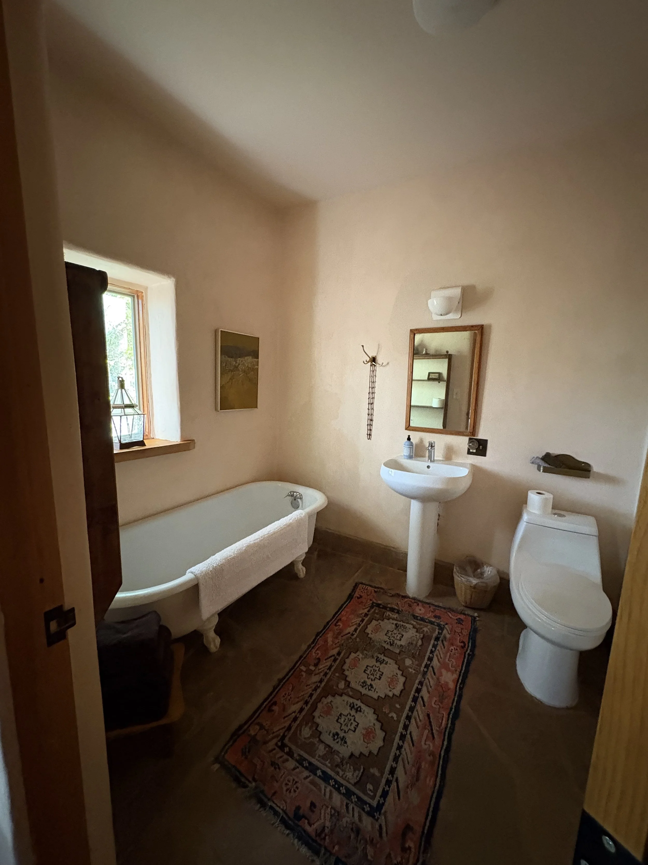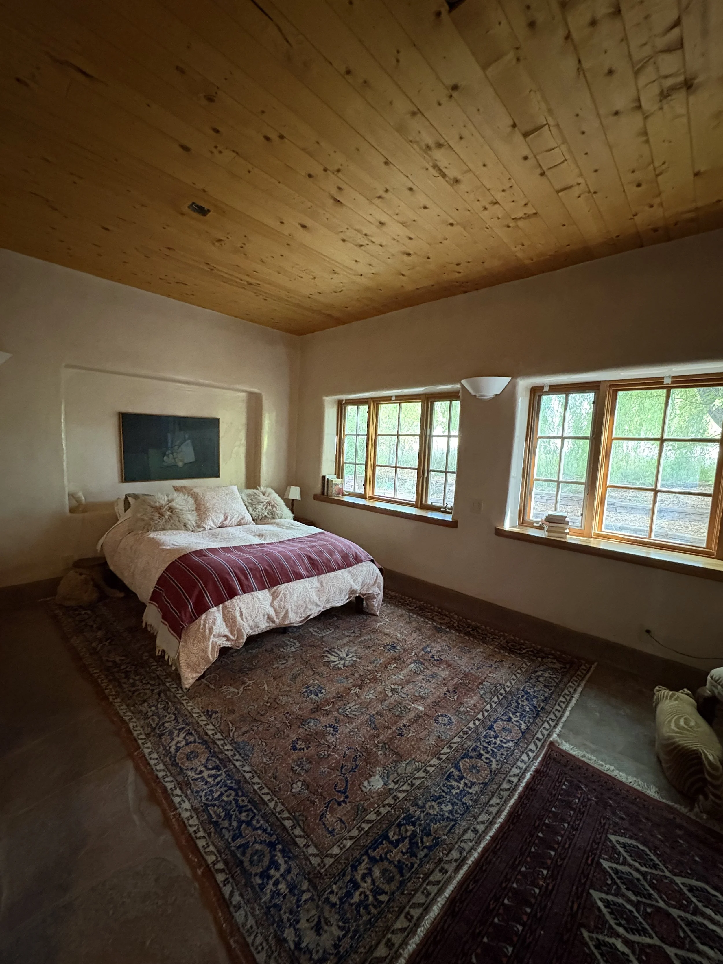 Choose from a range of thoughtfully curated accommodations, including private rooms with ensuite bathrooms, private rooms with shared bathrooms, and shared rooms. Each bed is outfitted with hand-made Japanese mattresses crafted in Albuquerque by Sachi Organics, layered with three-inch natural wool mattress toppers to support deep rest and restoration.